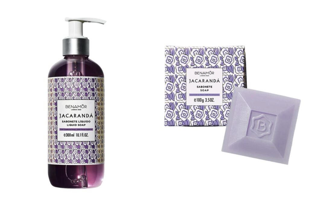 <ジャカランダ>リキッドソープ 300mL 4,290円、ソリッドソープ 100g 2,310円